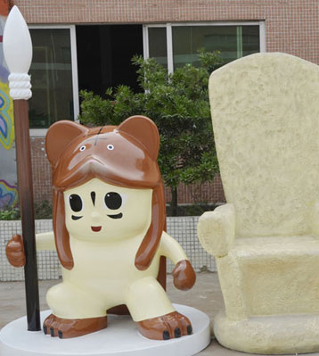 玻璃钢公仔造型雕塑采用高密度雕塑泡沫材料造型,196#不饱和树脂 及白金 玻璃纤维布。毛坯出来后经过打磨,表面采用汽车原子灰修补,汽车烤漆,内部为镀 锌角钢架。采 用高分子饰品亮光处理,色泽均匀,精致耐看,无气泡砂眼,纹理细腻。具有 可塑性强(只要您想 得到的卡通公仔造型,玻璃钢就能做出公仔雕塑),相对来说易成型、 质轻,强度高,耐腐蚀,相 对来说成本相对较低、表面效果多样等特点。可做常规潘通色、 彩绘、金色、银色、金铂、银铂、 仿铜等。