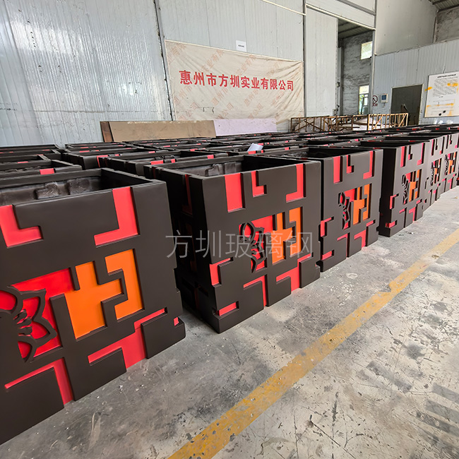 在生产车间(如惠州市方圳实业有限公司的生产线),整齐排列的玻璃钢花箱尽显规模与工艺之美。从模具定制、原料调配,到成型、上色,每一道工序都追求极致:工人精心打磨细节,既保障大规模量产以供应全运会各场景,又确保设计与品质的高度统一,为全运景观的 “整体美感” 筑牢根基。