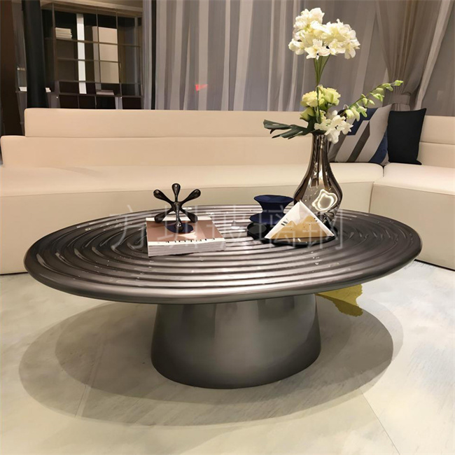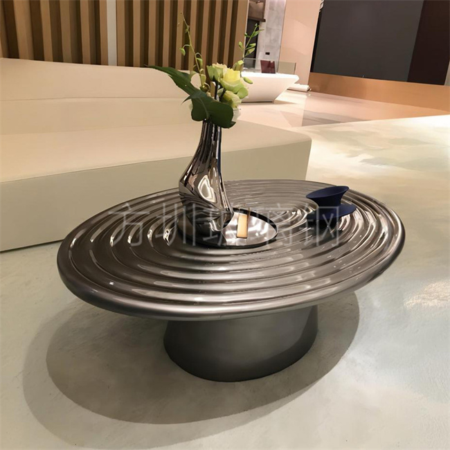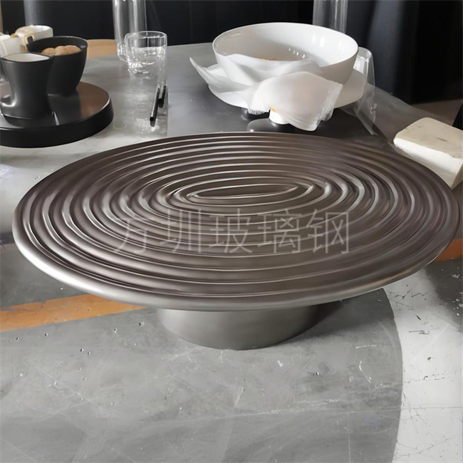 不同于批量生产的成品家具,艺术茶几的核心在于 “独特性”—— 而这恰恰是源头厂家的核心优势。以市面上走红的 “波纹肌理玻璃钢茶几” 为例(如图中呈现的圆形、椭圆形款式),其表面层层叠叠的涟漪造型,并非简单模具能实现:源头厂家拥有独立的模具开发车间,可根据设计师的手绘稿、3D 模型,精准复刻流体美学的曲面弧度,甚至能根据空间尺度调整茶几直径、高度,或是将深灰哑光质感改为象牙白高光面,让茶几与整体软装色调严丝合缝。